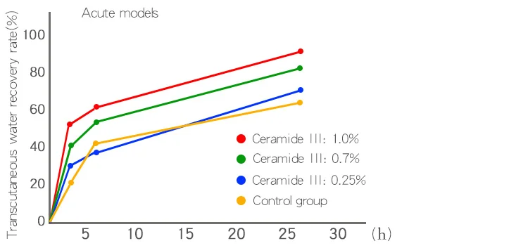 Using 1.0% ceramide, the repair of the skin barrier reached 90% at 24 h, moreover, the higher the ceramide concentration, the faster the skin barrier repair.